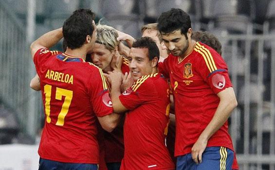 Spanyol : Iker Casillas, Sergio Ramos, Gerard Pique, Alvaro Arbeloa, Raul Albiol, Xavi Hernandez, Xabi Alonso, David Silva, Fernando Llorente, Juan Mata, Fernando Torres.